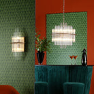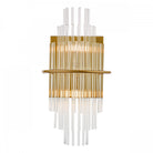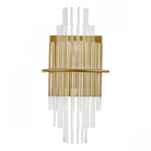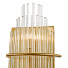 The Lukas antique gold wall light consists of two tiers of glass rods appearing to float within an antique gold band. It is designed to complement the Lukas 13 light pendant but works equally well as a statement wall light in it’s own right. Also available in polished chrome. LUK1735