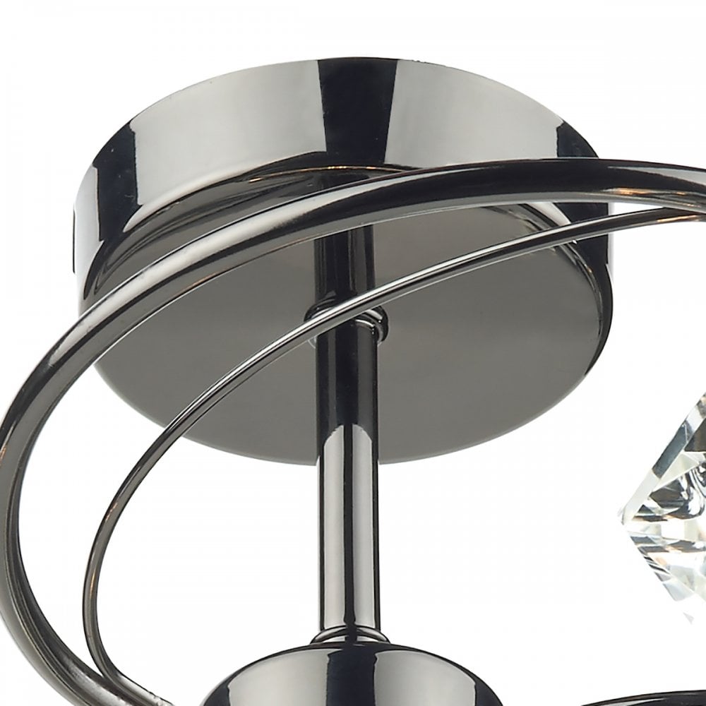 LUTHER 4lt Semi Flush fitting in black chrome with faceted crystal glass shades.