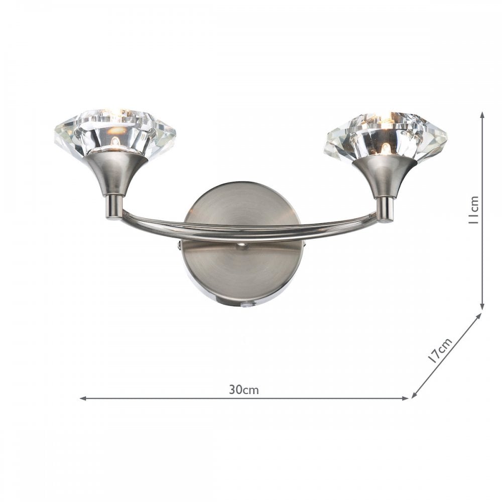 The LUTHER 2lt Wall Light in satin chrome with faceted crystal glass shades.