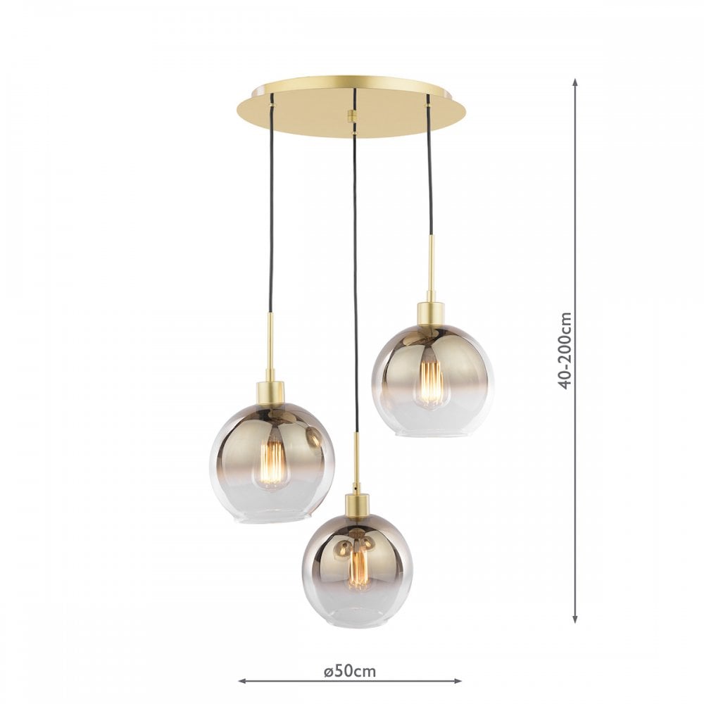 The LYCIA 3 LIGHT CLUSTER PENDANT from dar lighting offers a contemporary twist on a classic cluster pendant. The Lycia features a polished gold frame with a mirrored gold top plate, complemented by a gold-tinted glass shade. The Lycia cluster pendant features a height adjustable black cable allowing you to adjust the height to your preference. The Lycia cluster pendant is perfectly suited as a stairwell light or makes a great statement light hung low over a dining room table