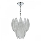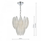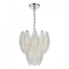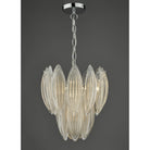 The Maeve 6 light pendant is a contemporary glass ceiling light. Inspired by a lotus flower, the textured glass panels really play with the light creating a sparkle as you walk around the room. The glass petals hang freely on a chrome metal frame. Fitted with 1 metre of chain which can be adjusted during installation.