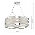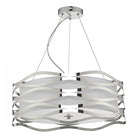 The Mizella 3 light Pendant MIZ0350 is a contempory stainless steel pendant with white cotton fabric inner and glass diffuser in a polished chrome finish.