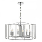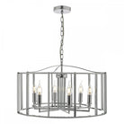 The Myka 6 Light MYK0650 a polished chrome fitting encased in a decorative cage with a curved top. This fitting looks wonderful with our decorative filament candle lamps and is height adjustable on installation.