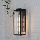 The NAXOS 1lt Outdoor Wall Light features a matt black finish with tempered clear glass.
