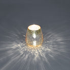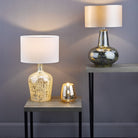 The eye-catching Neno table lamp features a curved base with an attractive speckle effect glass.