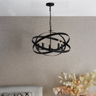 The Nitya 5 Light Pendant Matt Black is a perfect example of the refined industrial style. Featuring sweeping metal work around an elegantly simple light fitting. The Nitya Pendant light features a black metal body with a matt black finish for a look that blends seamlessly into any setting. The Nitya Pendant light features a black metal chain for height adjustment on installation. The Nitya Pendant light takes 5 E14 (SES) bulbs (not supplied), We recommend using LED filament lamps from our range of LED bulbs.