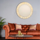 A large round mirror from dar Lighting, the Ophidian is an exceptional mirror with gold leaf detailing in a snake skin pattern on the broad surround. Just the thing for a stand-out accessory in a room where anything goes, or to inject opulent texture into an otherwise neutral room. Suitable for wall mounting. Fixings not included; please use screws and wall plugs appropriate for the construction of your wall.