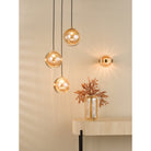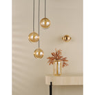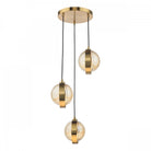 Ophira Cluster Pendant Light Antique Gold & Amber Ribbed Glass 3 Light