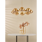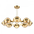 Ophira Pendant Light Antique Gold Frame & Amber Ribbed Glass Shades 8 Light