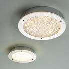 With a crushed crystal diffuser set in a polished chrome frame, designed to bring a sparkle to any bathroom. The PETA bathroom ceiling light is IP44 rated so is suitable for use in bathroom zones 1 and 2 or anywhere water spray is a risk. A larger size is also available.
