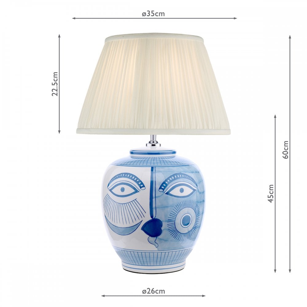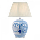 The Picasso Table Lamp is a hand painted ceramic table lamp decorated with a fun face inspired by Picasso in a deep blue on a white glazed background, complete with an ivory faux silk shade. The Picasso table lamp makes a great talking point for your living room or add some fun to your bedroom as a bedside lamp