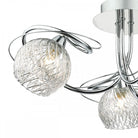 REHAN - is a compact modern style ceiling fitting with 3 x G9 lamp holders set in a delicate clear ripple glass shade with decorative wire inserts to create a beautiful lighting effect. Ideal for low ceilings this light gives out a great sparkle.