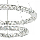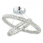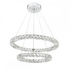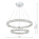 ROMA is a fabulous double hoop of faceted crystal squares set in a polished chrome frame. Illuminated by the modern technology of 2 x 28 watt LED giving a great light output of 1502 lumens this light fitting truly sparkles from all angles. It provides a great centre piece and can be fitted as 2 separate hoops hanging vertically or the smaller hoop can be hung at an angle inside the larger hoop giving the appearance of interlocking circles. The Roma can be used with a suitable dimmer to create a beautiful relaxed atmosphere.
