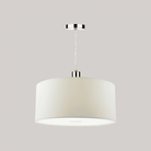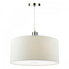 Dar Lighting Ronda easy fit ceiling pendant light shade featuring a Porcelain White faux silk drum shade &  white acrylic diffuser with centre chrome disc detail.