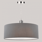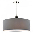 Dar Lighting Ronda easy fit ceiling pendant light shade featuring a Slate Grey faux silk drum shade & white acrylic diffuser with centre chrome disc detail.