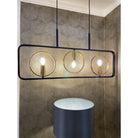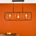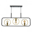 The Ryota 3 light bar pendant features 3 lamp holders framed with antique gold halos, all 3 sitting inside a large black frame suspended by 1 metre of black fabric cable that can be adjusted on installation. This linear pendant works great over a dining table or breakfast bar in the kitchen but can be hung low in the space to create a kind of lit pendant to separate open plan living room.