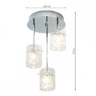 The SOMERSET 3lt Semi Flush fitting features 3 glass shades, each surrounding crystal drops set in a flower shape.