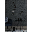 The Spiral 2 Light Table Lamp features smoked glass globes spiraling around a vertical satin black bar with a dense, slender base for a contemporary look.