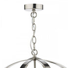 Matching satin chrome ceiling plate. Comes with 1 meter of chain.
