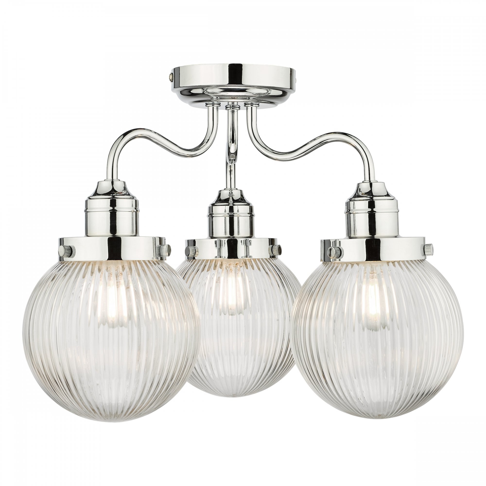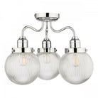 The Tamara 3 light bathroom ceiling light features three elegant ribbed glass shades, which would be equally at home in a French bistro or a country kitchen.