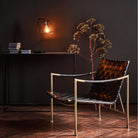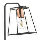 The TOWER table lamp features a graphic frame in matt black with copper detailing.