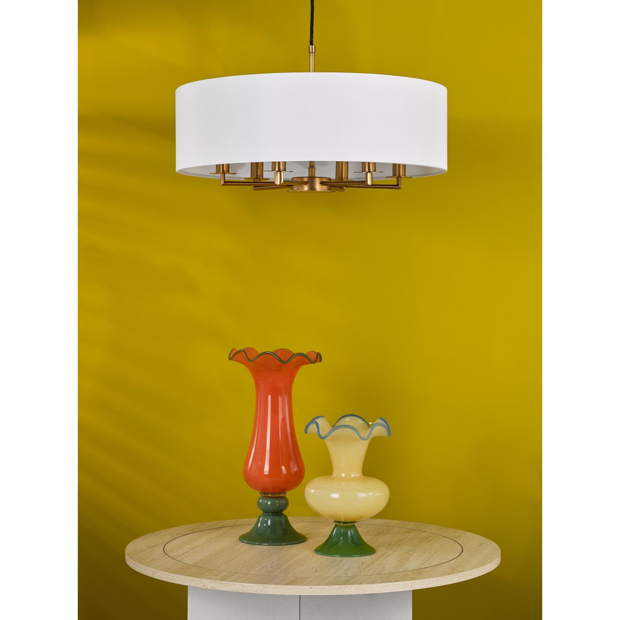 The Tyler 6 light pendant blends contemporary elegance with versatile design, featuring a crisp ivory linen shade with matching lining and a refined oval arm profile. Perfectly suited for living rooms, bedrooms or dining spaces, this chandelier offers a refined centrepiece that balances timeless style with understated sophistication.