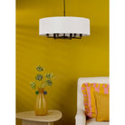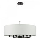 Tyler Pendant Light Matt Black Metal Frame & White Shade 6 Light