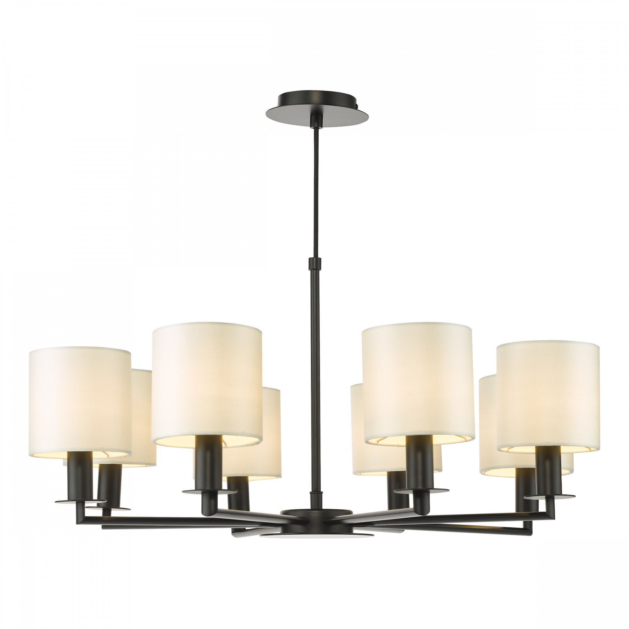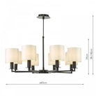 The Tyler 8 Light Pendant in satin black is a striking centrepiece, defined by its clean oval arms and crisp, sculptural lines. It comes complete with ivory cotton shades, adding elegance and softness to its bold form. Perfect for living rooms, dining areas, or bedrooms, the Tyler combines refined drama with timeless versatility, making it a sophisticated addition to both classic and contemporary interiors.