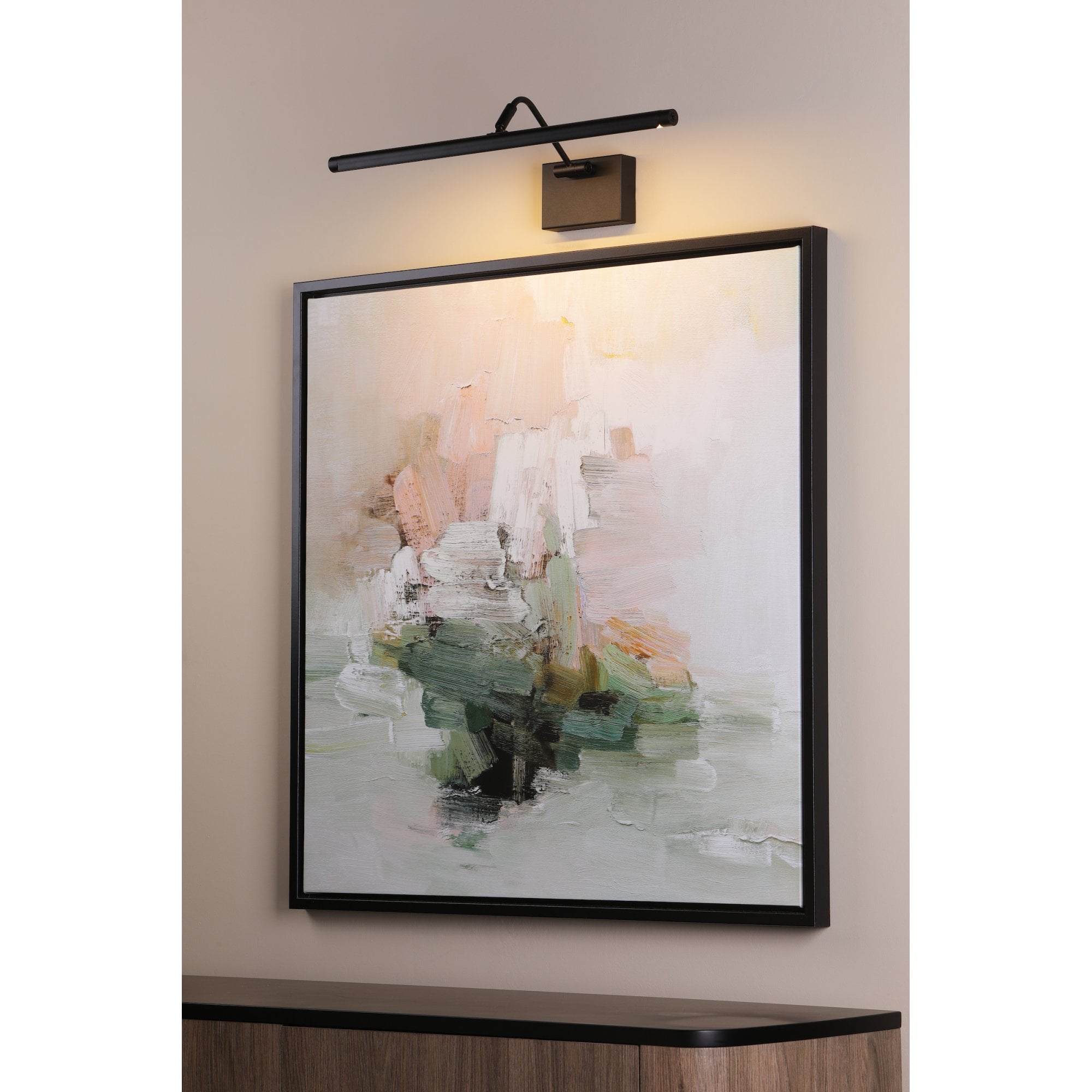 The Tyrus 35cm picture light in brushed bronze brings warmth and sophistication to artwork and display walls. Its slim, timeless design features advanced LED technology with a CCT button, allowing you to choose between cool, neutral or warm white light for the perfect presentation. An adjustable head directs illumination exactly where needed, providing a soft, glare-free glow. Perfect for gallery walls, statement pieces or cherished displays, it highlights art with elegance and precision.