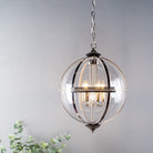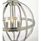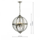 The Vanessa 5 light Lantern VAN0538 in a polished nickel finish is decorative pendant featuring a spectacular orb glass shade with intricate metal detailing. This fitting is height adjustable. An eye-catching fitting that would look fabulous in any living space.