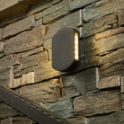 The Vulcan outdoor wall washer casts light in both an upward and downward trajection. A sturdy die cast aluminium construction finished in a dark grey matt powder coat; a tough durable finish. Fitting is IP44 rated, with water resistance suitable for outdoor use. See also: Arjun, Byers and Exeter.