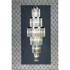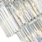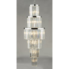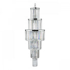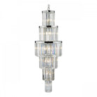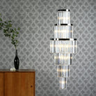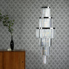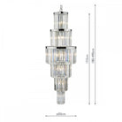 A cascading waterfall of almost 1.5 metres of bevelled crystal is suspended from a polished chrome frame. The slender profile of this stunning chandelier lends itself perfectly to being the focal point of a staircase - or if height allows - a tremendous statement above a dining table. Fitted with 2 metres of matching chain which is adjustable on installation to a maximum height of 490cm.