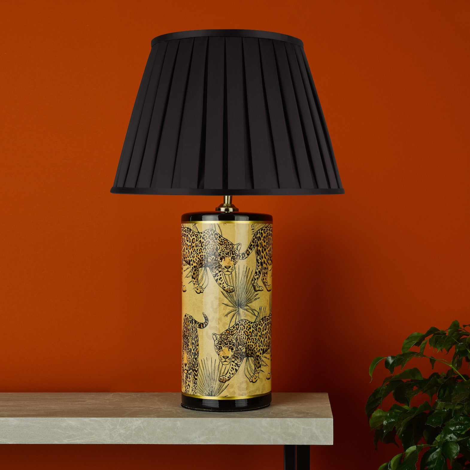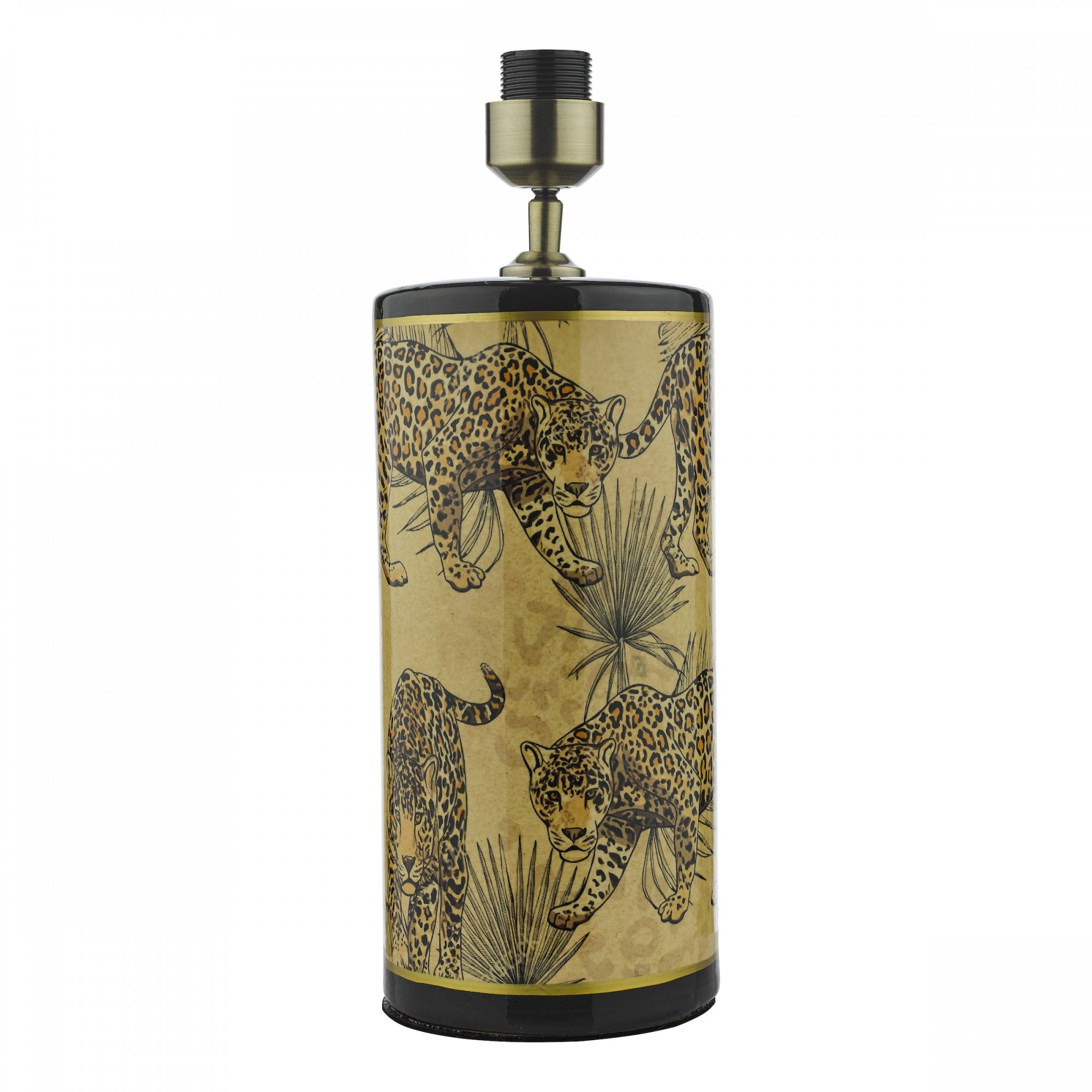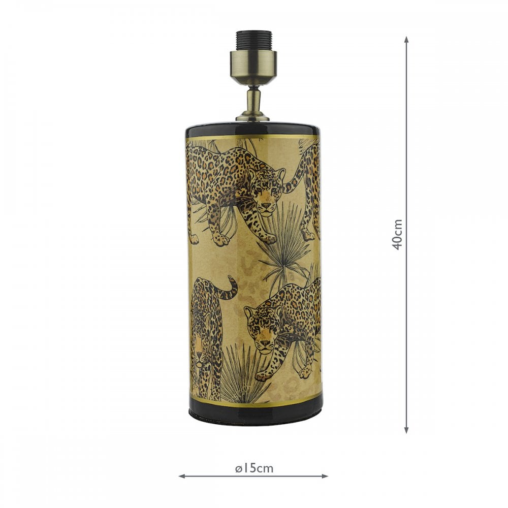 Traditional 1 light table lamp base with a gold and black finishing and leopard design.