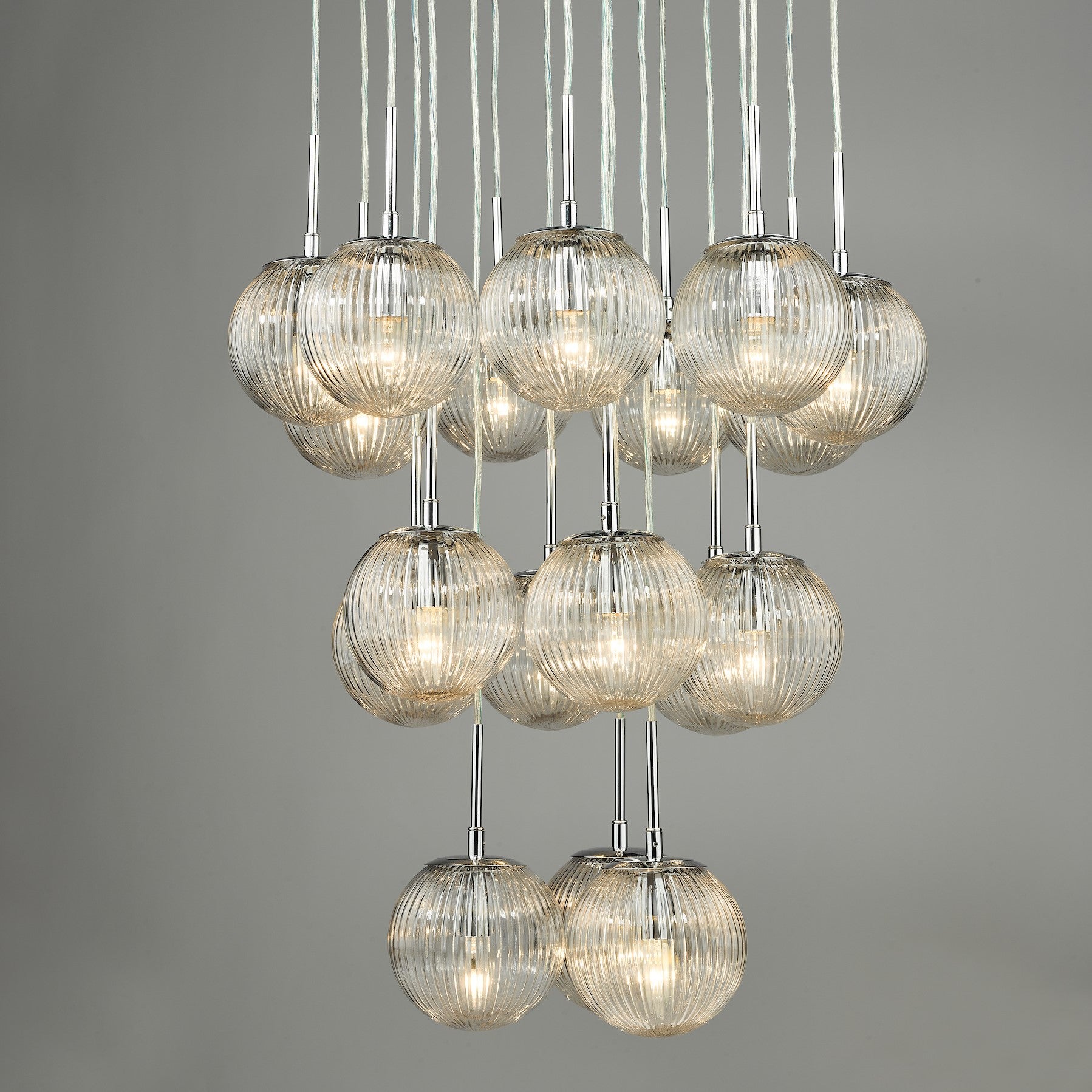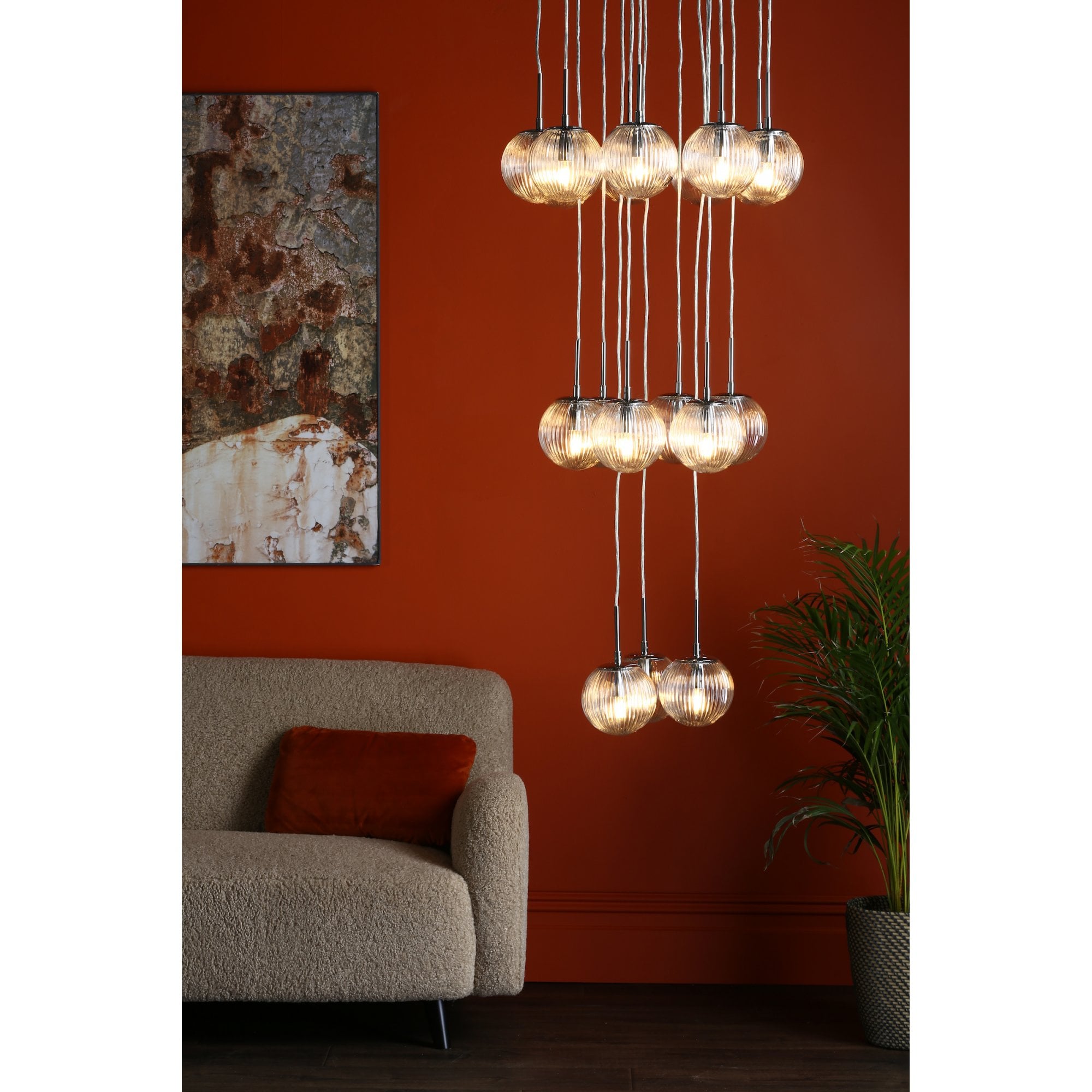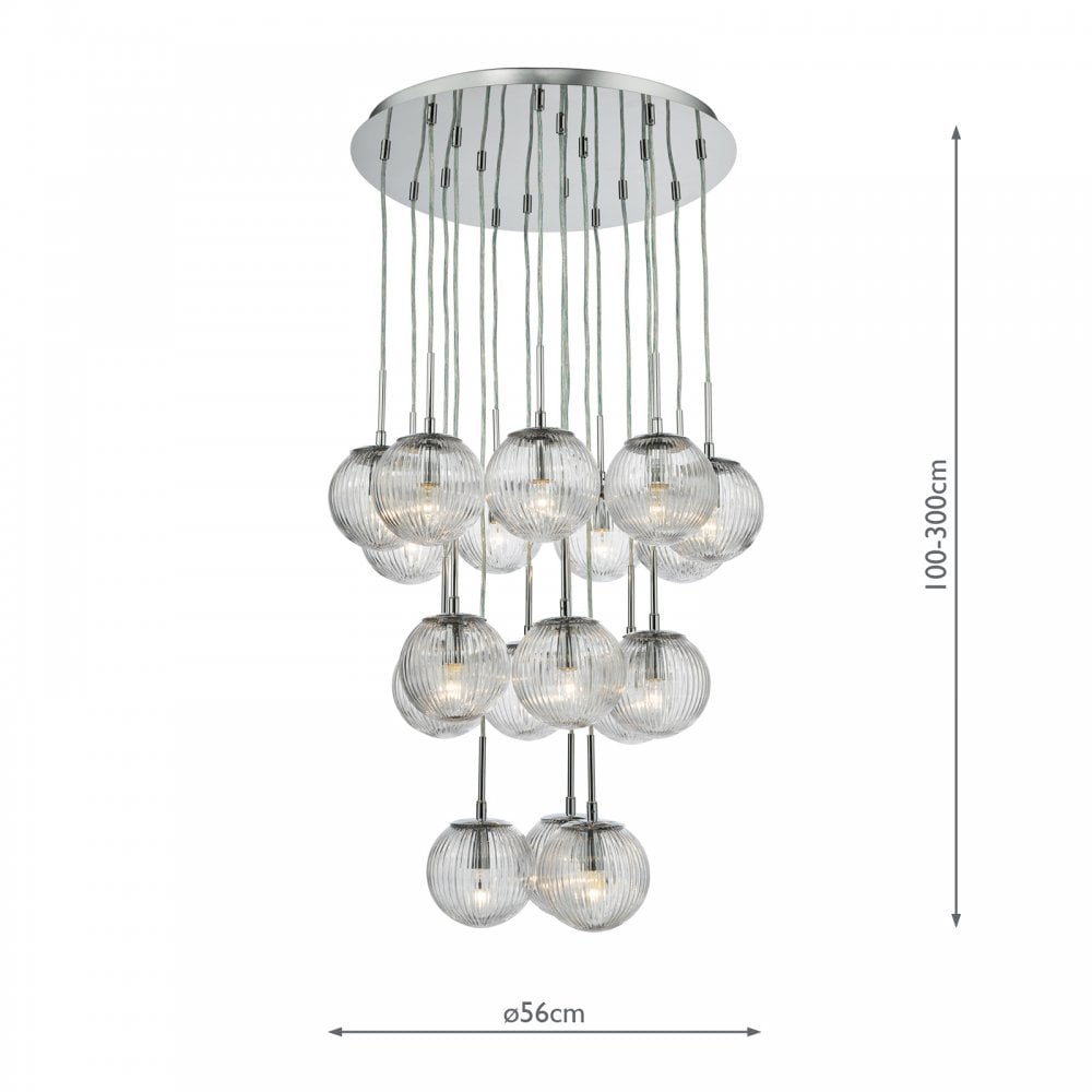 Pelagia 18 Bulb Polished Chrome & Ribbed Glass Cluster Pendant