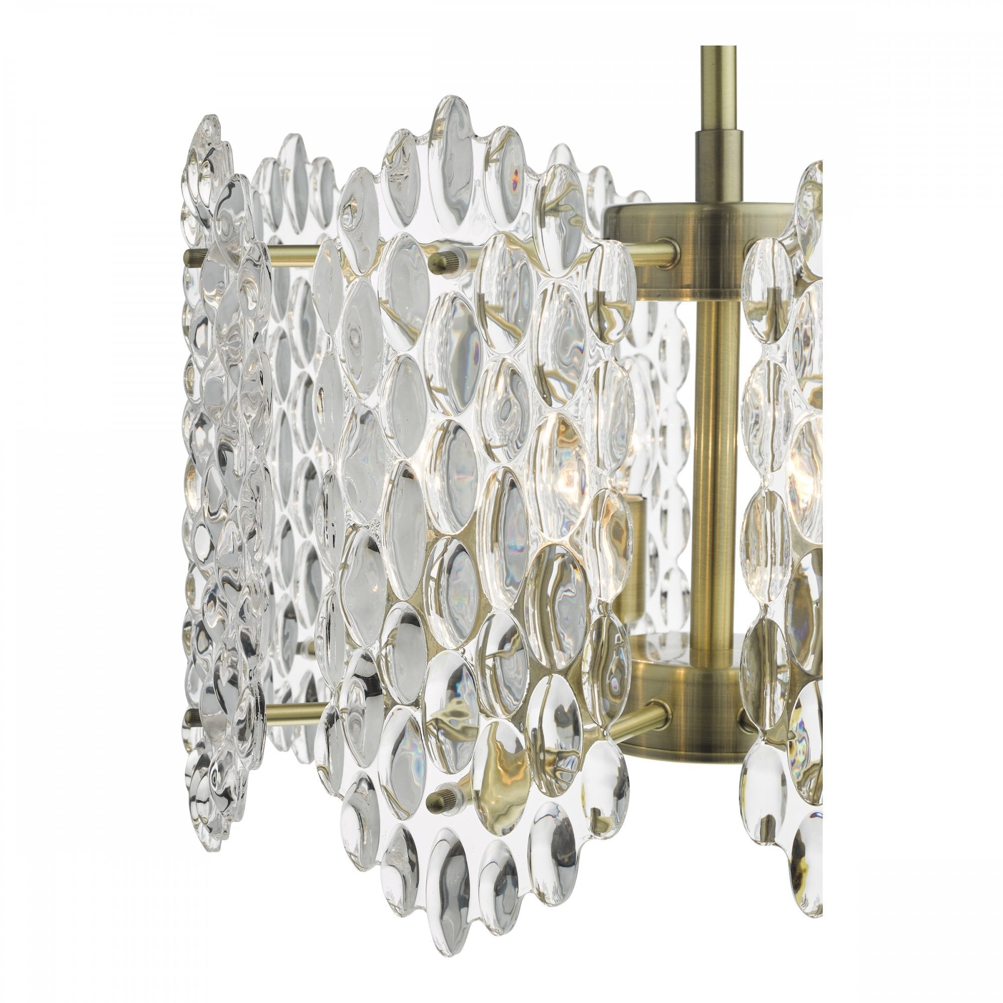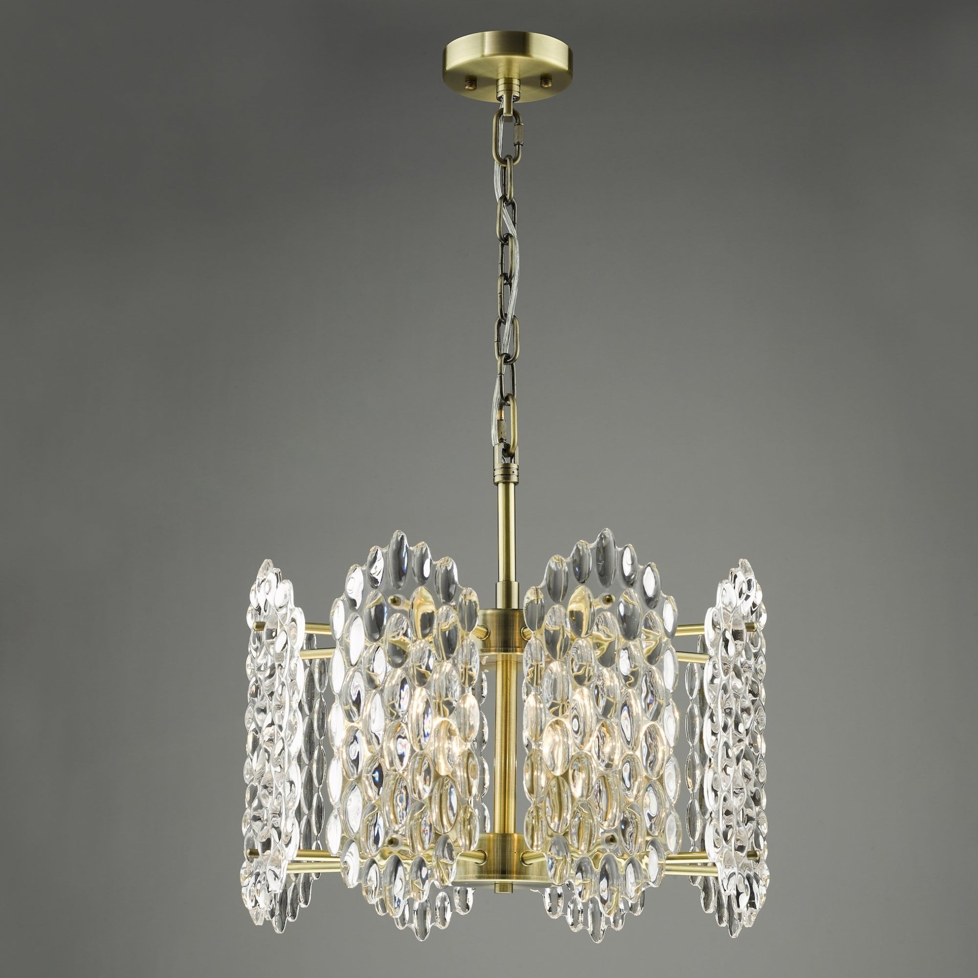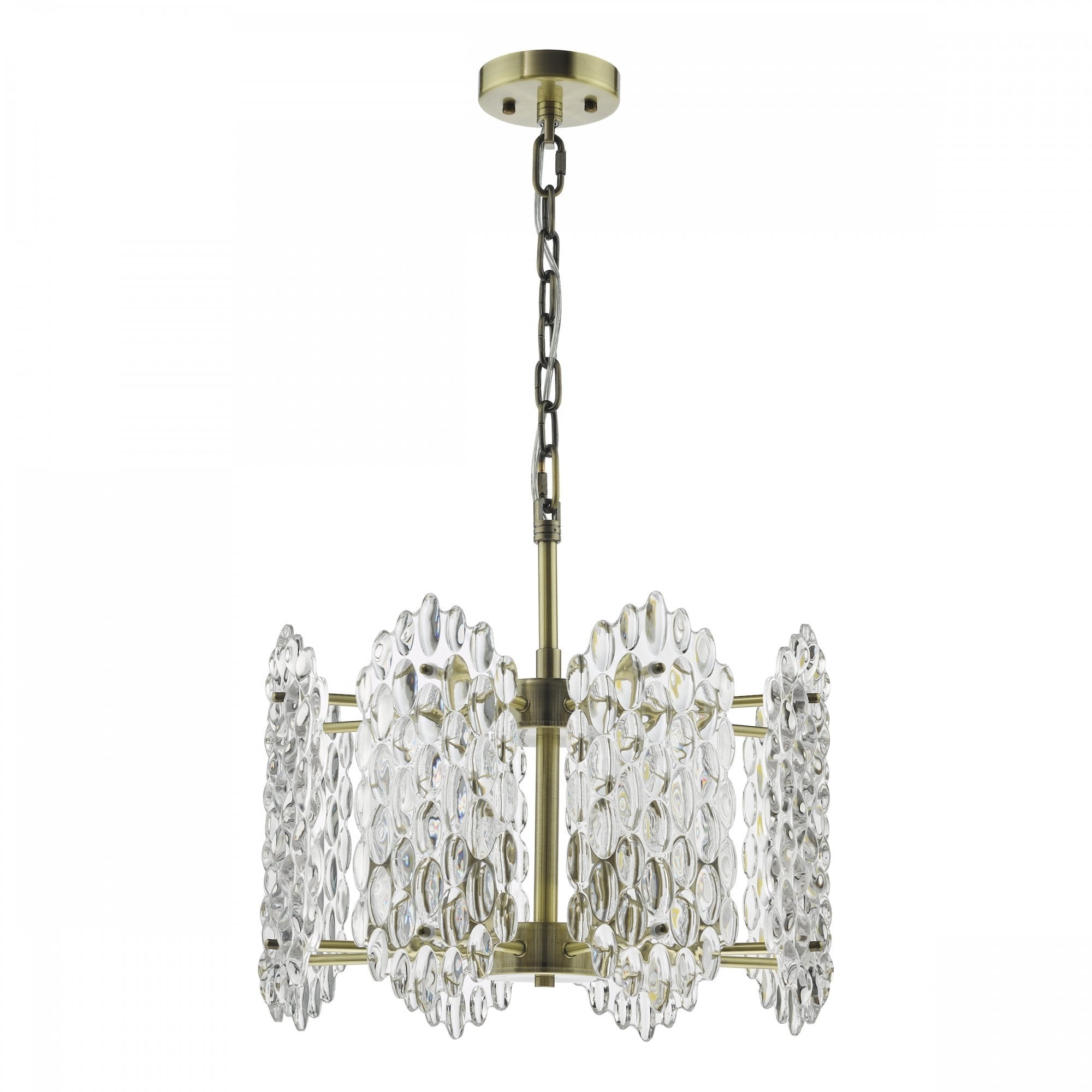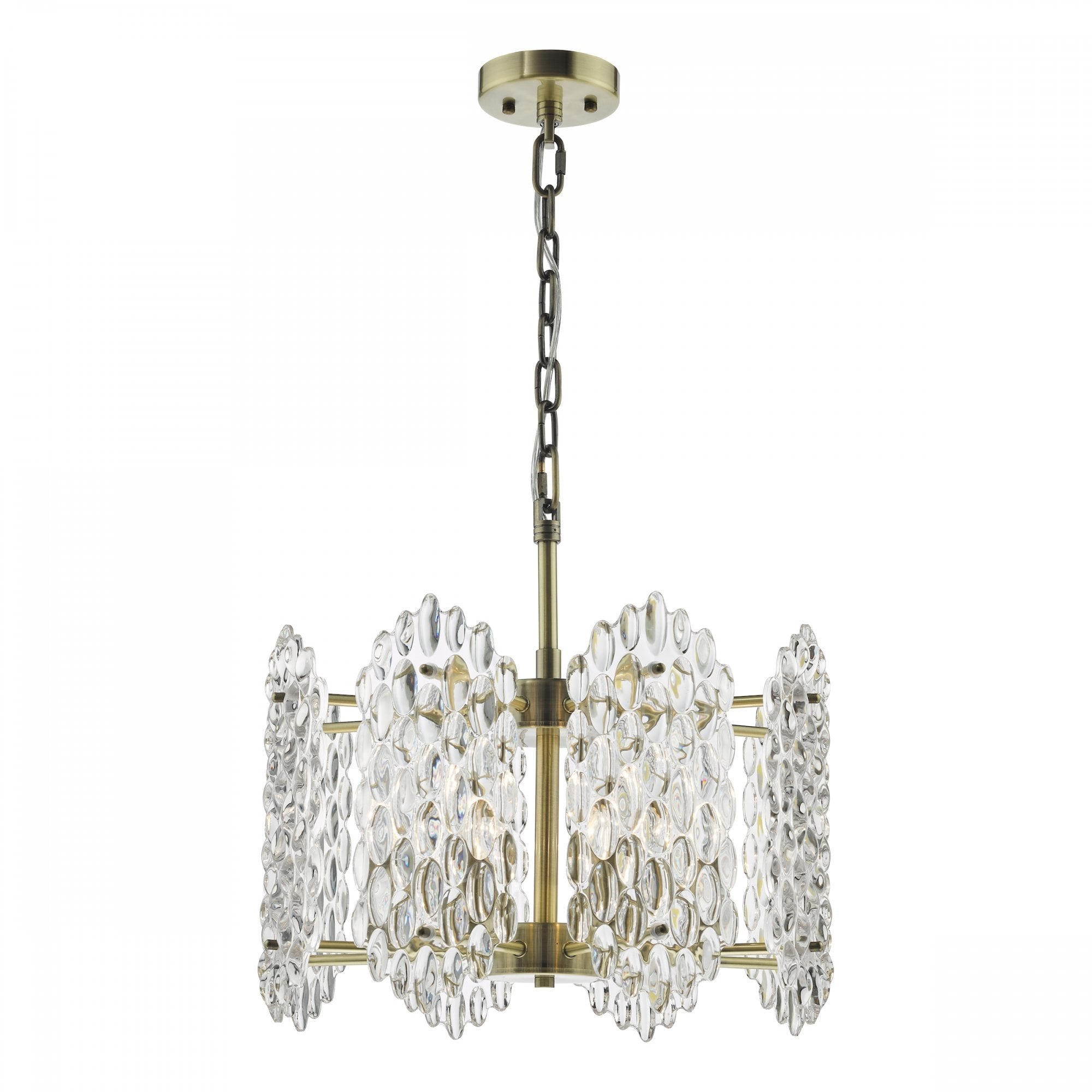 The Porthos 8 Light Pendant Antique Brass and Glass is a beautiful large yet shallow chandelier with a unique arrangement of textured glass with elongated lenses that gives a unique effect. The Porthos chandelier features a luxurious antique brass finish with a clear cable. The Porthos chandelier features a height adjustable frame allowing you to set it at the height you desire.