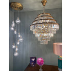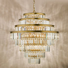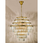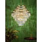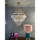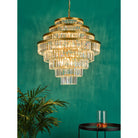 With eight stepped tiers of bevelled crystals suspended from a bronze frame, the Rhapsody chandelier combines luxury materials with grand proportions to create a real statement wherever it is placed. Supplied with 3 metres of cable and matching bronze chain, Rhapsody can be adjusted from just under 1 metre to almost 4 metres, making it as versatile as it is captivating.