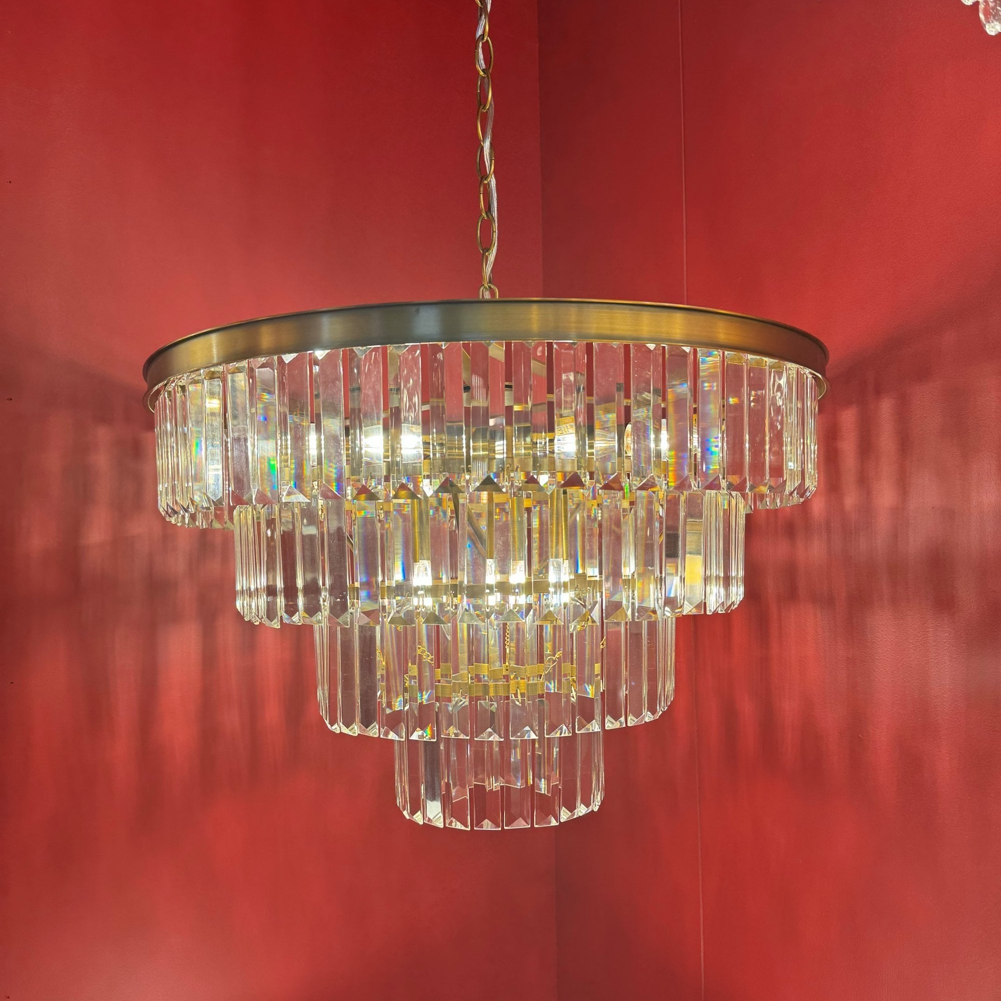Rhapsody Chandelier Crystal Shade Natural Brass Frame 6 Light
