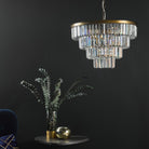 With four stepped tiers of bevelled crystals suspended from a bronze frame, the Rhapsody chandelier combines luxury materials with grand proportions to create a real statement wherever it is placed. Supplied with 2 metres of cable and matching bronze chain, Rhapsody can be adjusted from just under 60cm to just over 2.5 metres, making it as versatile as it is captivating.