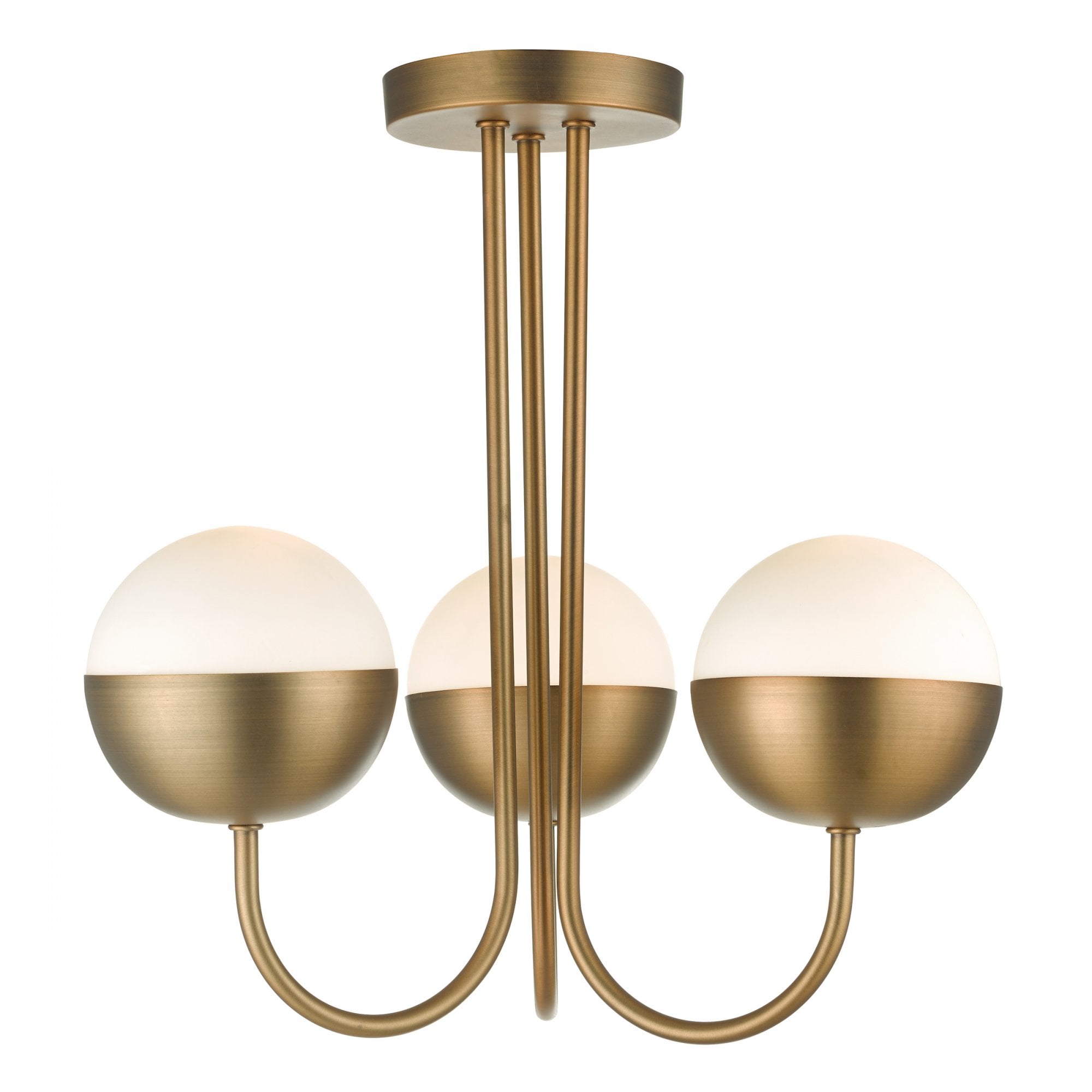 The Andre contemporary wall light features an aged brass framework and opal white glass to form a globe, producing a soft and warm light output. The wall light is operated by a pull cord. The wall light takes 1x E14/SES.