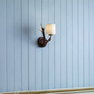 Antler small single wall light, hand painted in our highland rustic finish with cream fabric drum shade and bronze metal work.