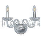Chrome 2 Light Wall Bracket with glass Trimmings looks stunning on any wall. The stately fitting features barley twist arms and intricate crystal trimmings, with two candle style lights and a sleek chrome finish. It is perfect for adding a touch of luxury to your bedroom, living room or dining room or kitchen.