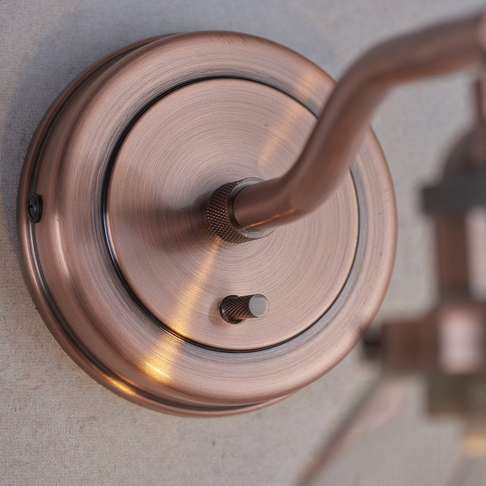 An authentic 'retro' style adjustable wall light, finished in a copper plating with authentic knurled lamp holder details and clear glass shades . Featuring an adjustable knuckle and accessible on/off switch, pair this wall light with filament LED lamps for that perfect industrial style. The perfect addition for today's stylish homes to create that on trend bar, bistro look.