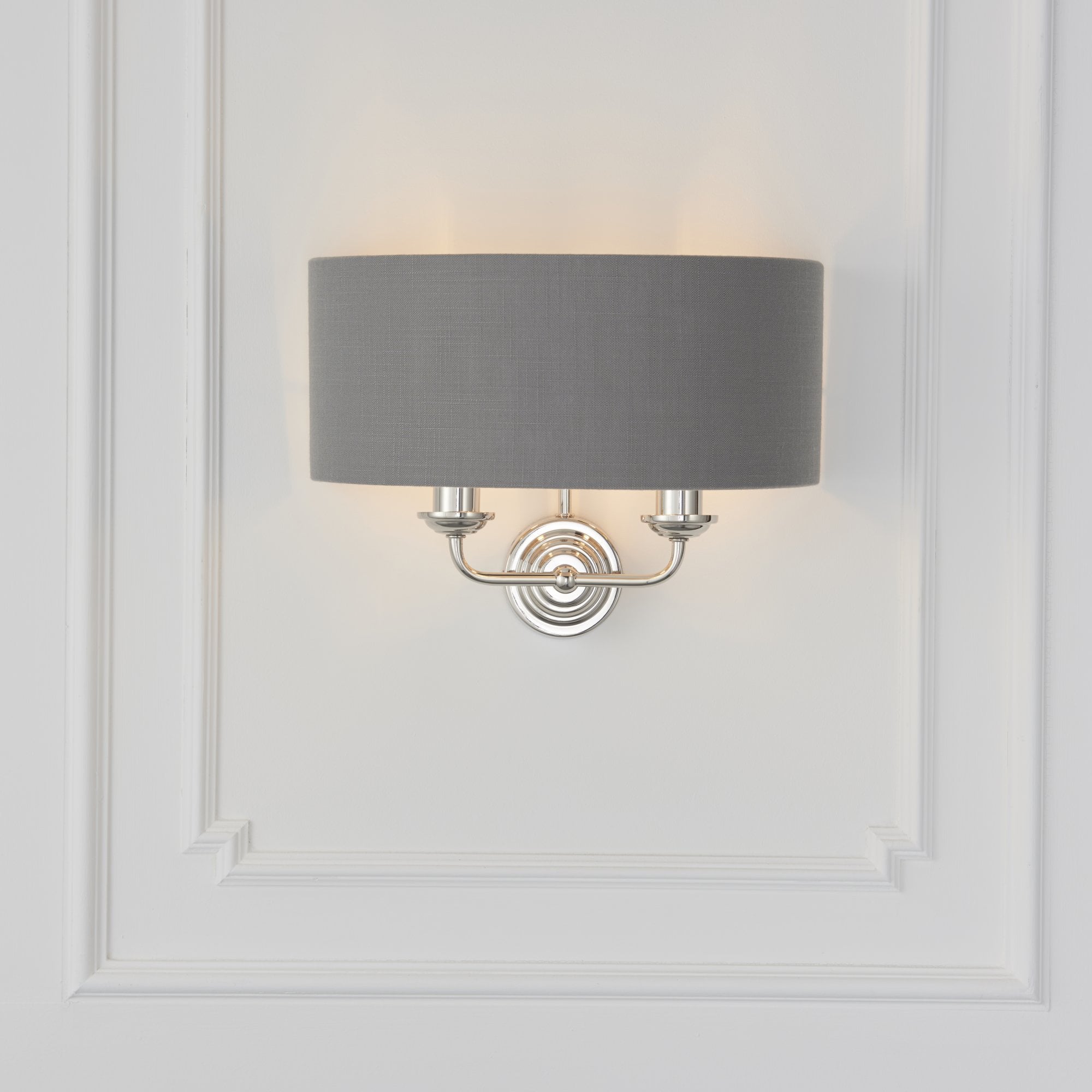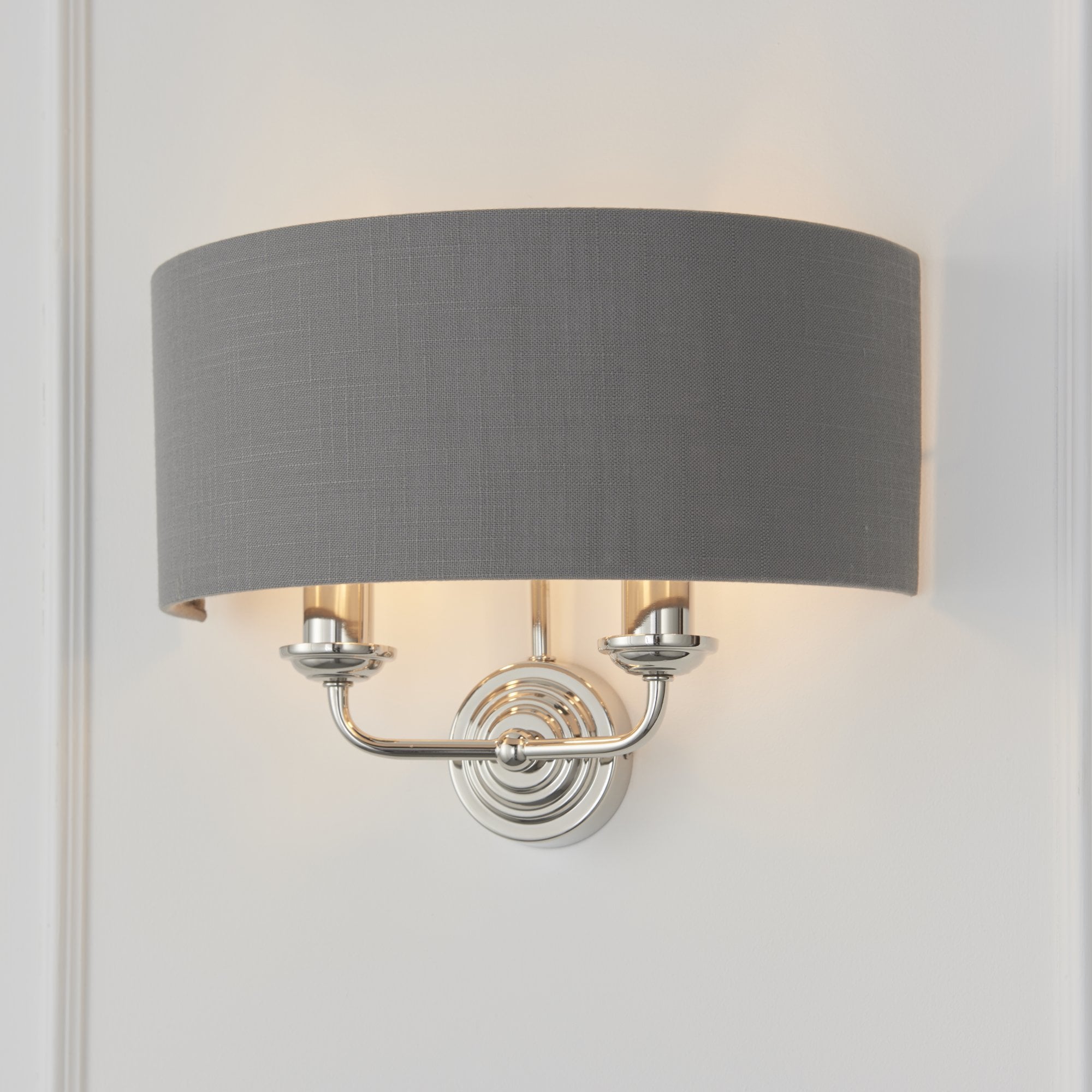 Highclere Wall Light Nickel & Charcoal Shade 2 Light