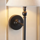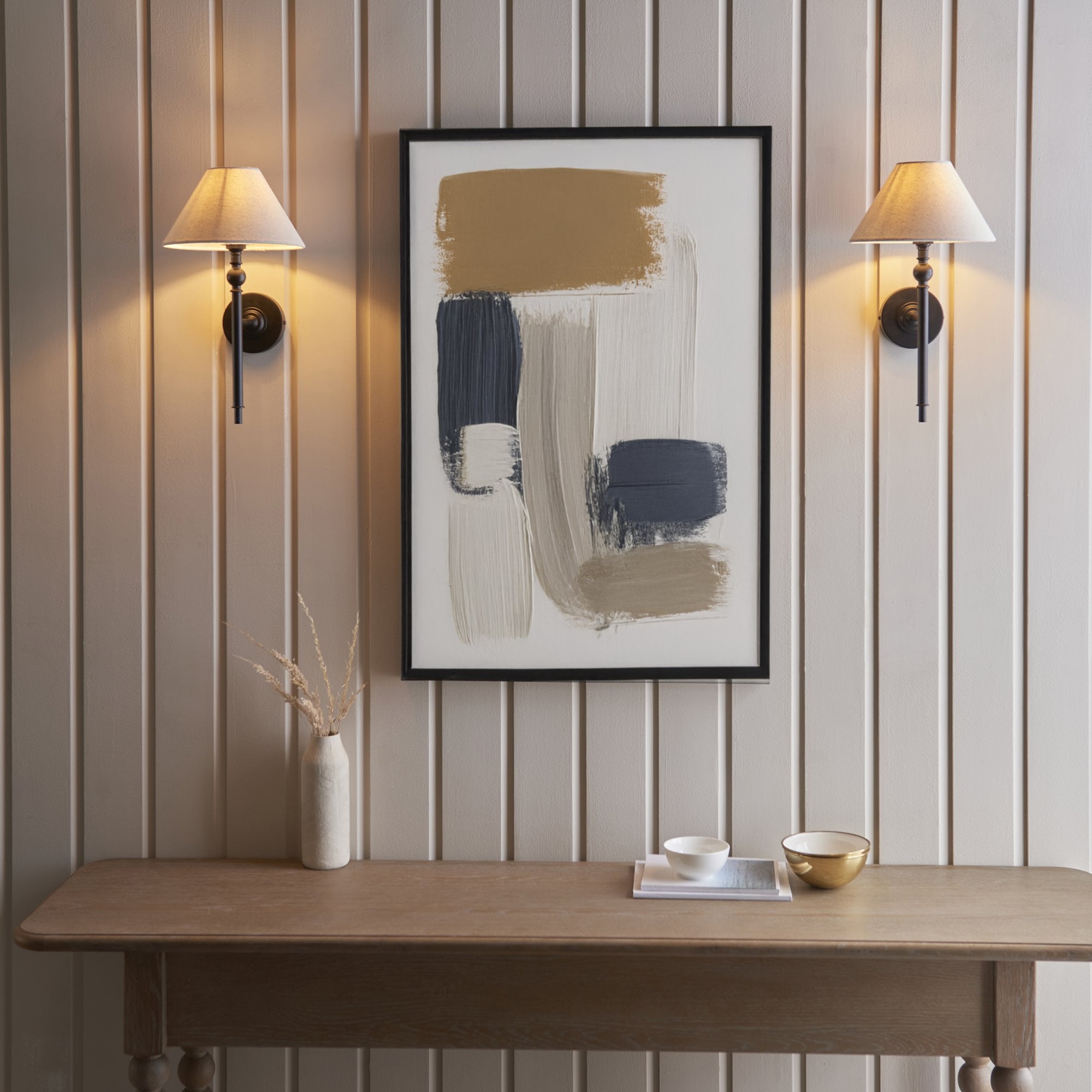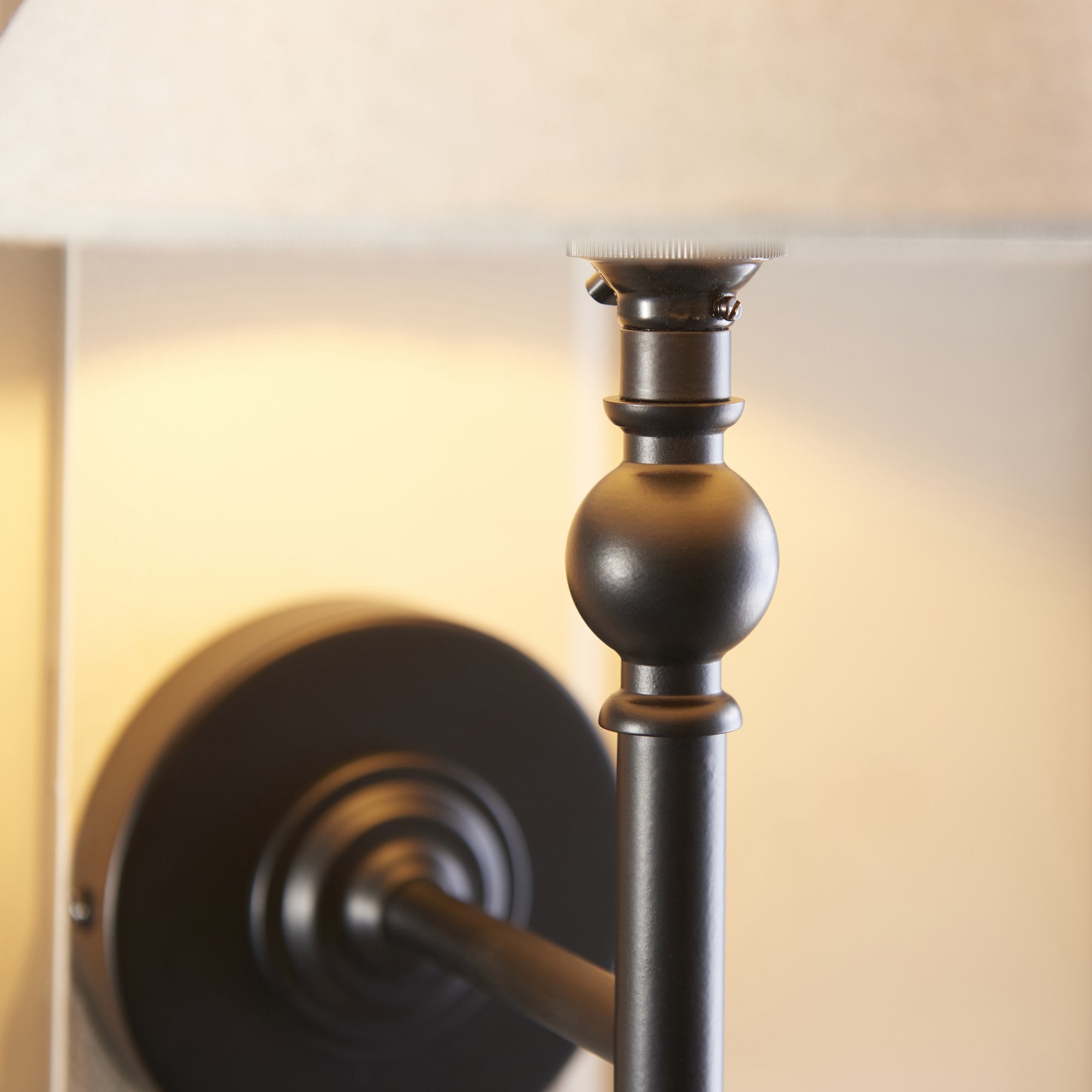 This elegant wall light is finished in matt black and features a timeless tapered shade in natural linen mix fabric. Complete with a B22 lamp holder for an authentic classic look, making it a wall light to be proud of. Matching items available.