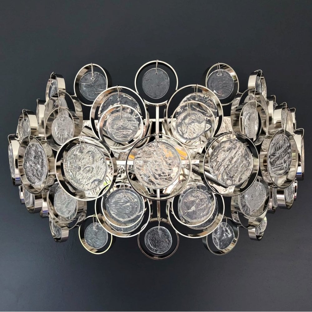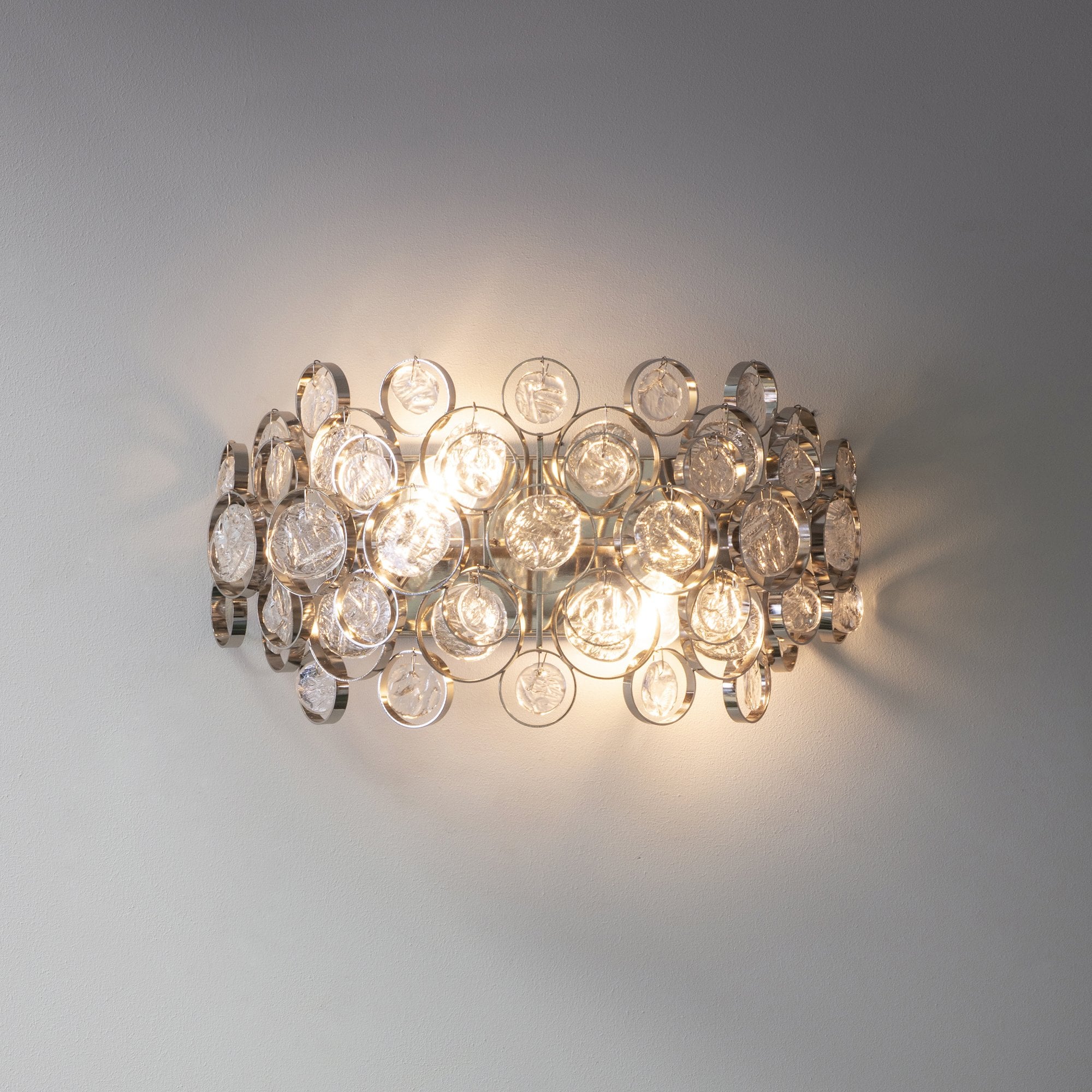 Adorned by beautiful ornate, hand made clear glass medallions, the Marella wall light is a stunning addition to any of the most loved rooms in your home, finished in bright nickel.
