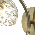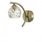 The Nakita single wall light in antique brass and clear glass shade. The heavy glass pressed glass shade of the Nakita single wall light has a twisted pattern that flows with the arms and gives an interesting and beautiful lighting effect when on and still glistens in ambient light when off. The antique brass finish is gaining popularity again in modern interiors but always has a timeless look in more period properties. The pull cord switch means you can switch it independently to the other lights in your room without the expense of adding extra wall switches. If you already have an extra wall switch don’t worry you can easily set the switch to ‘on’ and remove the cord.