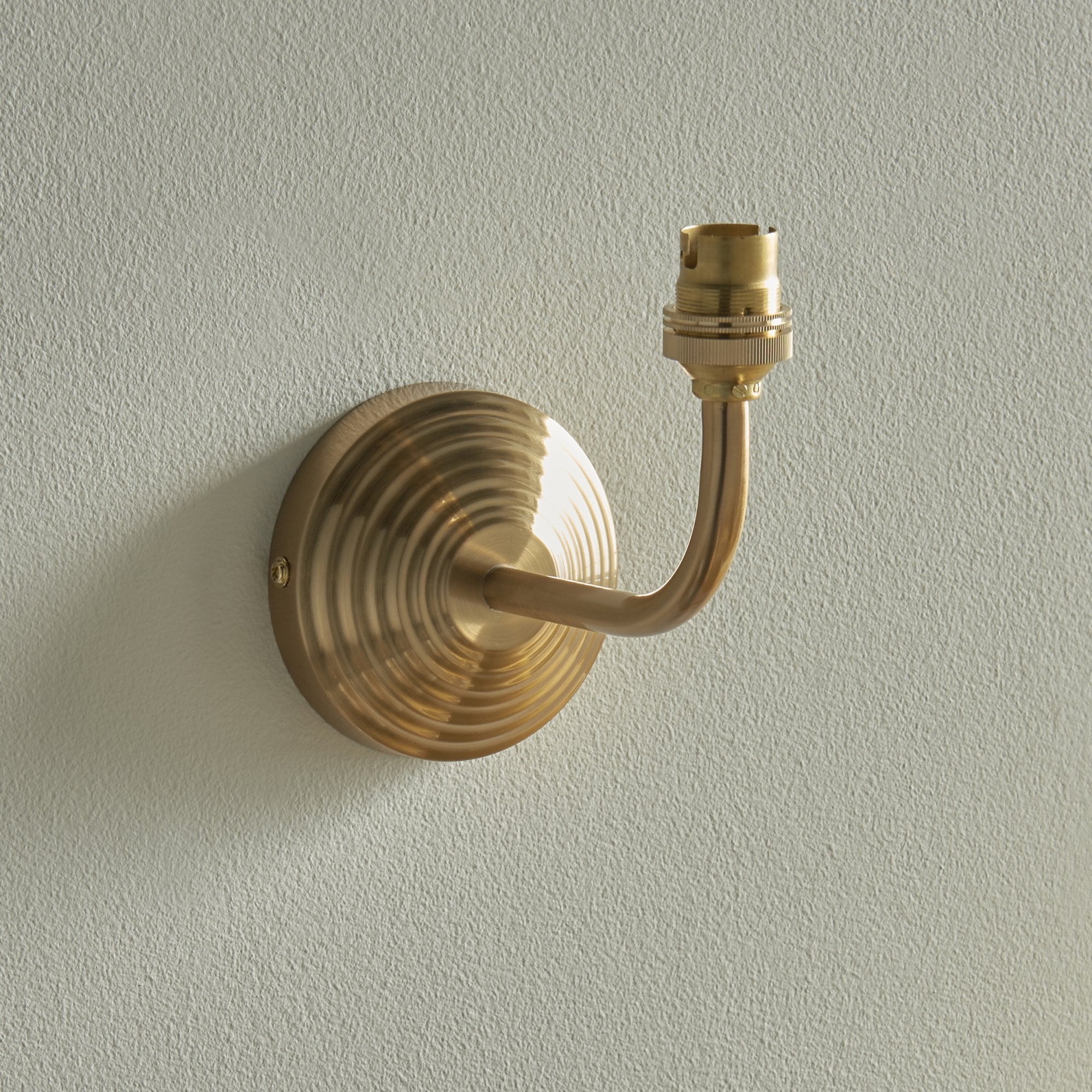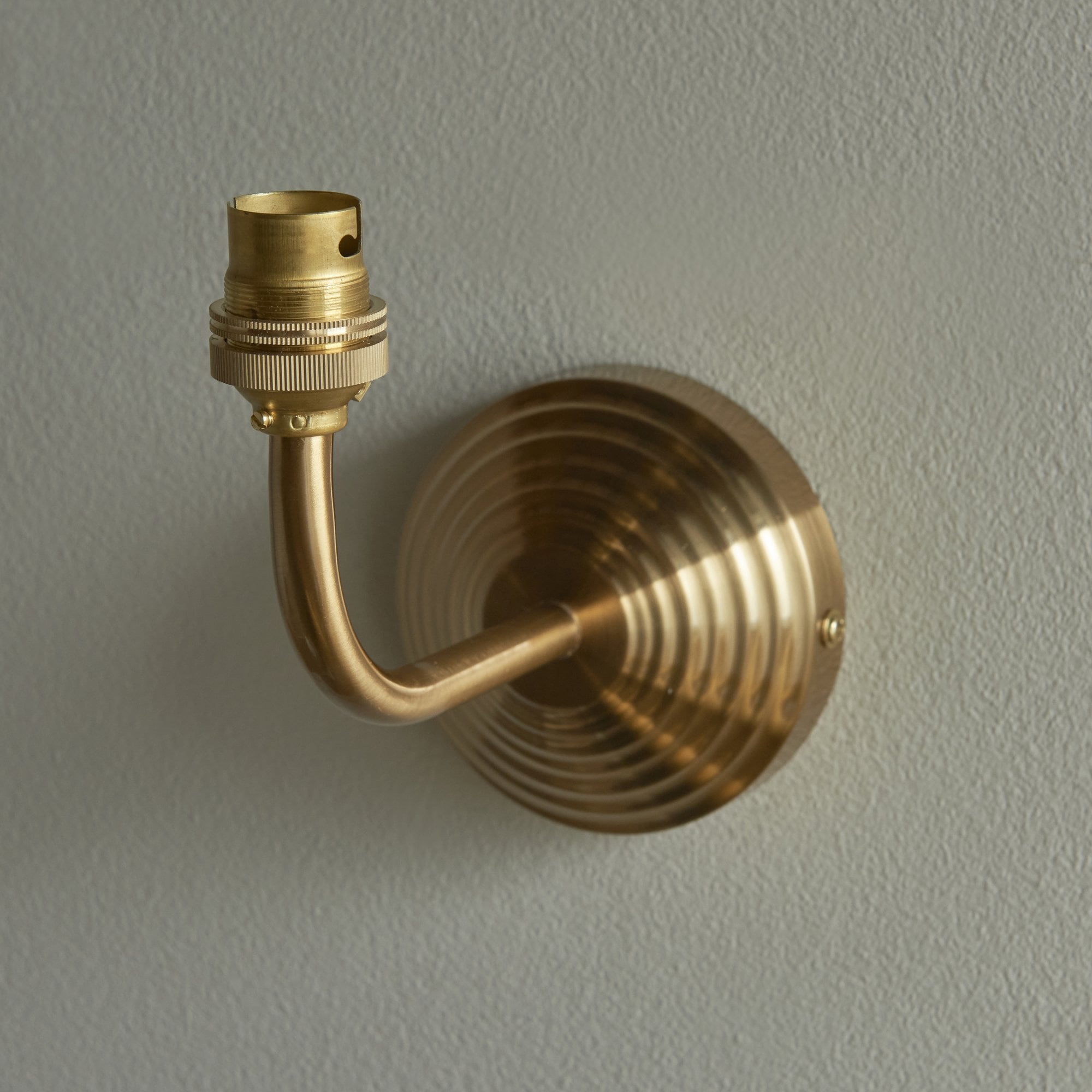 A multiple stepped wall back with a simple curve arm, finished in brushed aged brass. Complete the look with one of our 16cm decorative fabric shades.
