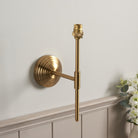 A multiple stepped wall back with understated T shape arm. Perfect for many areas of your home, finished in brushed aged brass. Complete the look with one of our 16cm or 20cm decorative fabric shades.