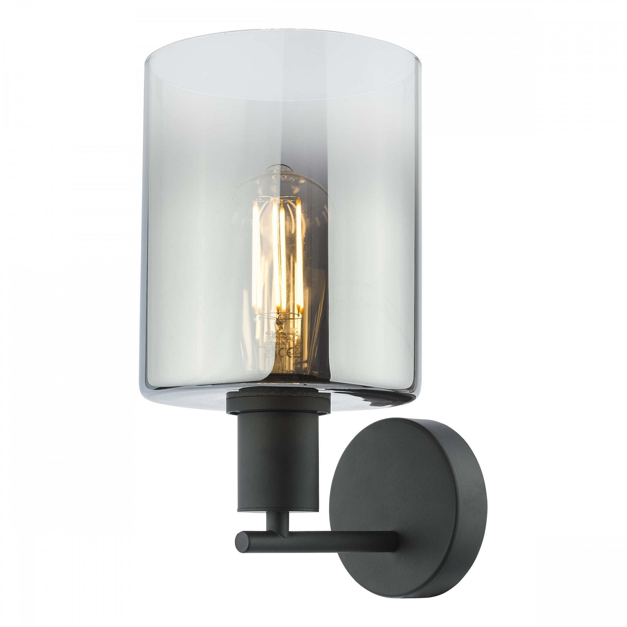 Savannah Matt Black & Smoked Glass Wall Light