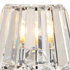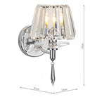 This wall Light has a polished chrome frame, a crystal glass shade and decorative dropper.